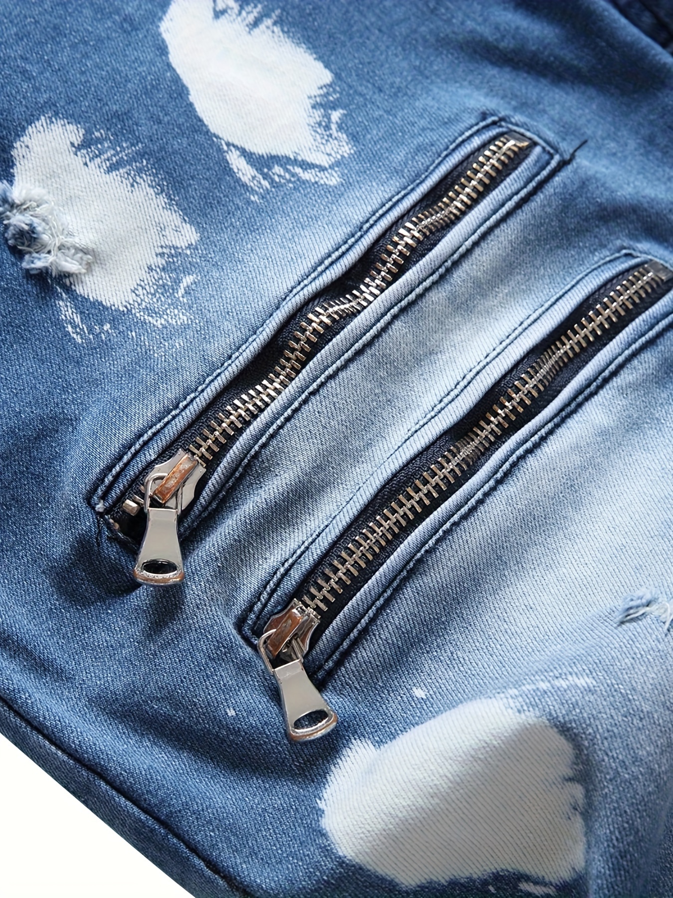 Large Ripped Zipper Jeans Men’s large jeans with ripped zipper stretch pants